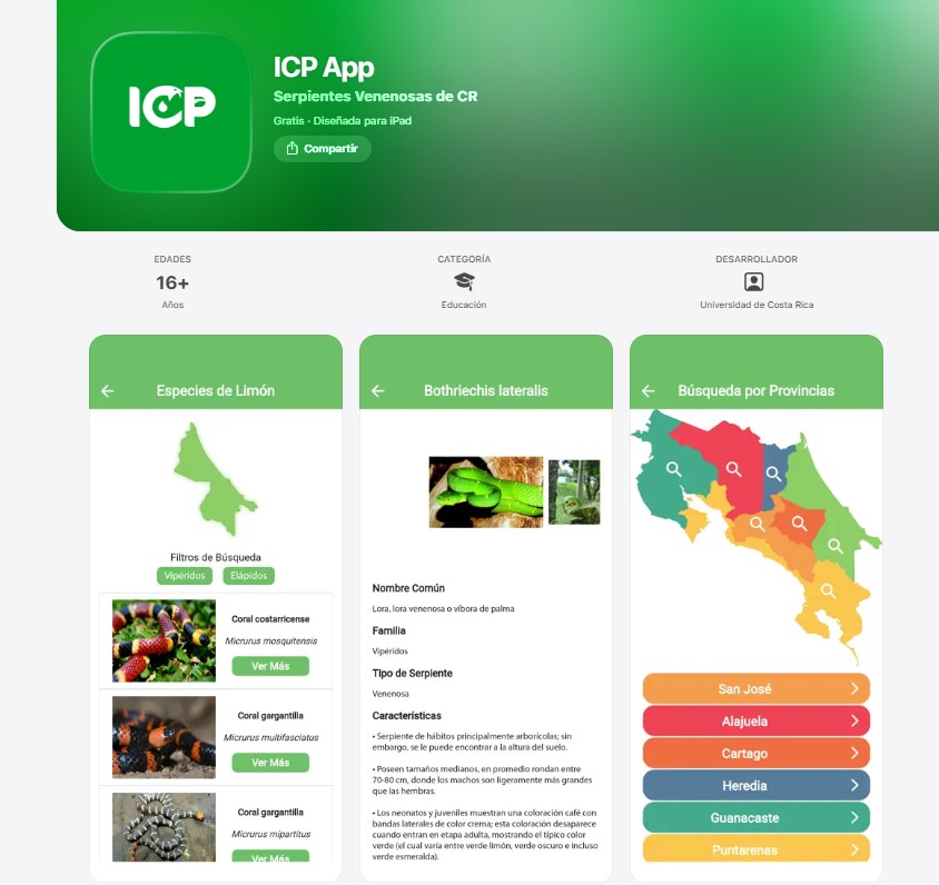 The ICP App is the first free application in Costa Rica specifically designed to identify venomous snakes. It allows users to recognize the 25 dangerous species present in the national territory and provides clear information on how to act in case of a bite. (UCR, 2026)