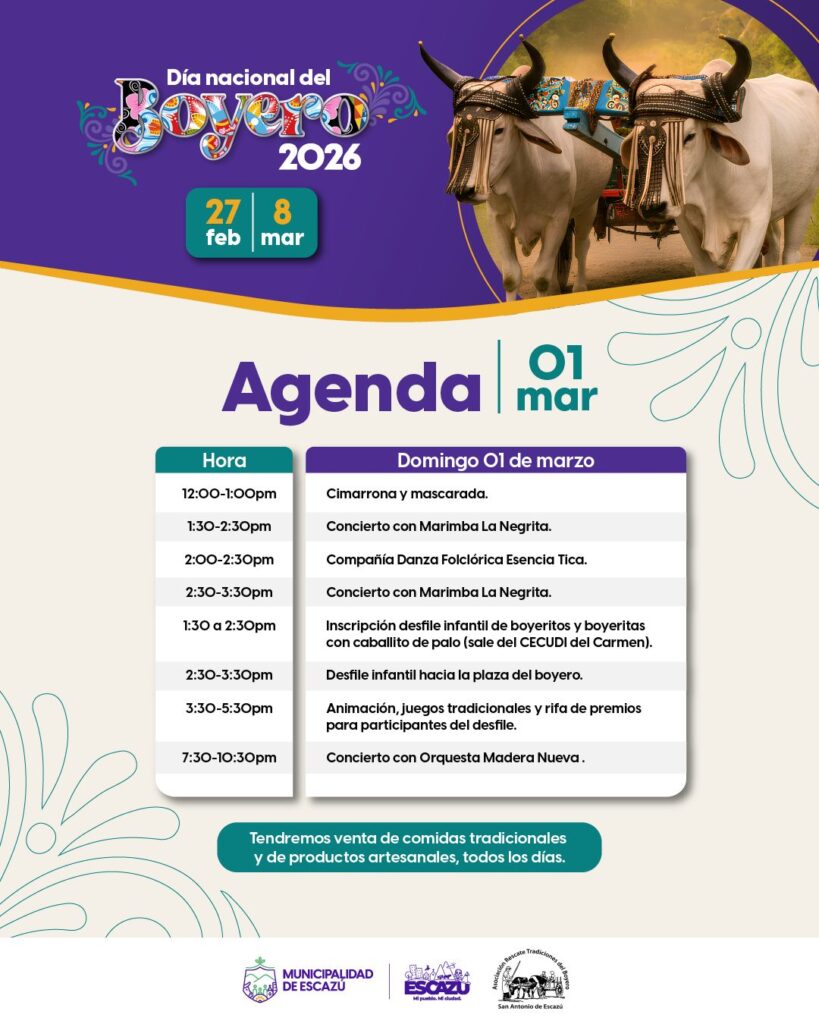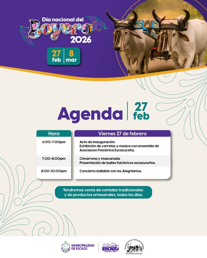 - Celebraciones tradicionales como el Día del Boyero en Escazú