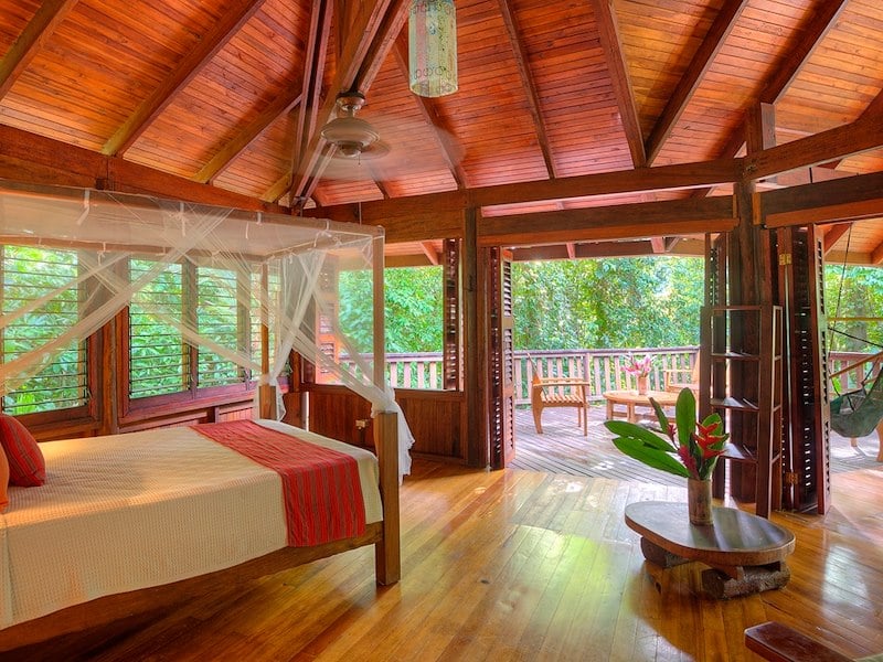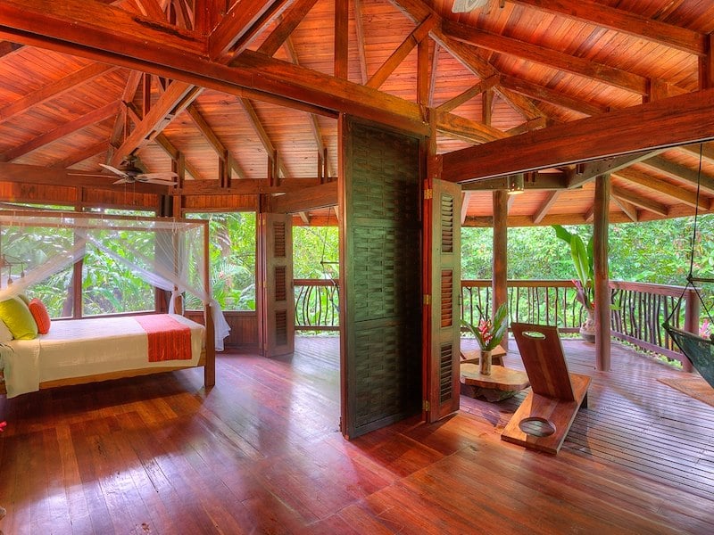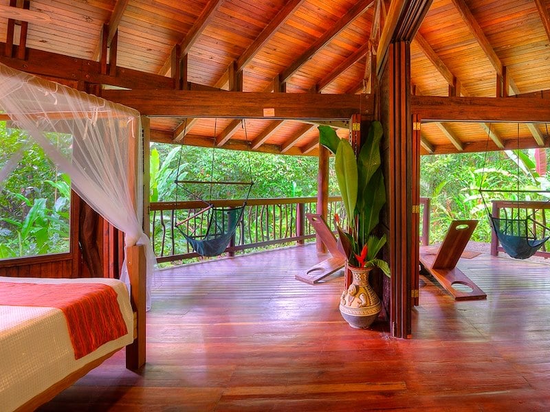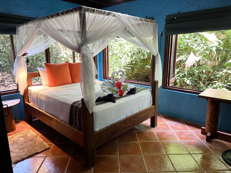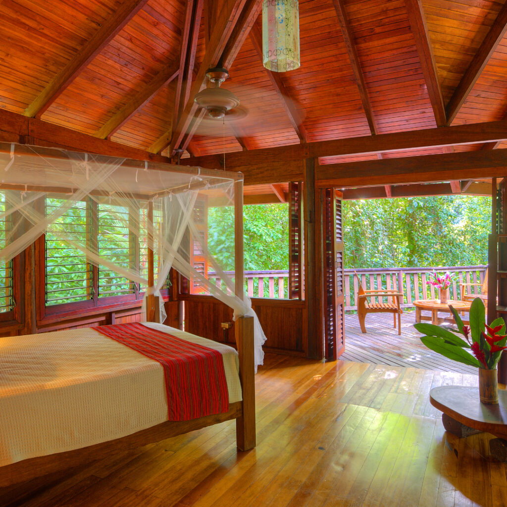 - One Bedroom Cabin: Cabañas más íntimas, perfectamente integradas en la vegetación, para quienes buscan silencio y privacidad. Con dormitorio separado, terraza envolvente, ducha con vista a la selva.