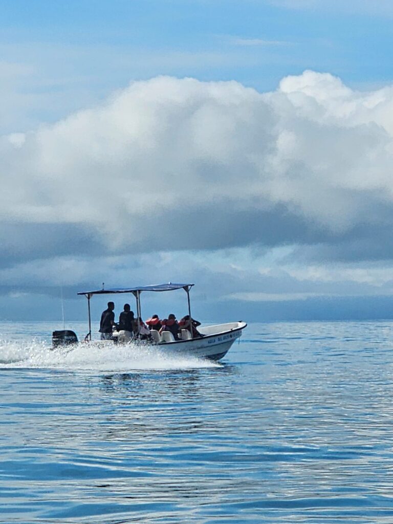 El recorrido desde el muelle de Puerto Jiménez hasta Nicuesa Lodge dura unos 20 minutos en bote. El ecolodge se encuentra justo en línea recta, al otro lado del golfo. El viaje es tan tranquilo que, para quienes padecen mareo o tienen un oído interno sensible, podría compararse más con un paseo en bicicleta por la ciudad que con una travesía marítima.