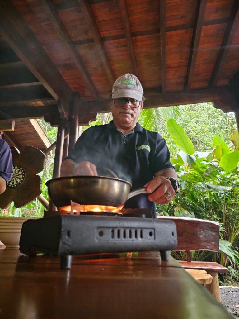 La comida es tradicionalmente costarricense, aunque no en formato de “casado”. No hay menú a la carta: cada día el hotel ofrece distintas opciones, siempre balanceadas y sabrosas. Hay alternativas vegetarianas, aunque la proteína suele ser el eje del plato, fiel al estilo de la cocina local. El café está disponible a toda hora, y unas galletas caseras de coco terminaron por conquistar a todos los presentes.